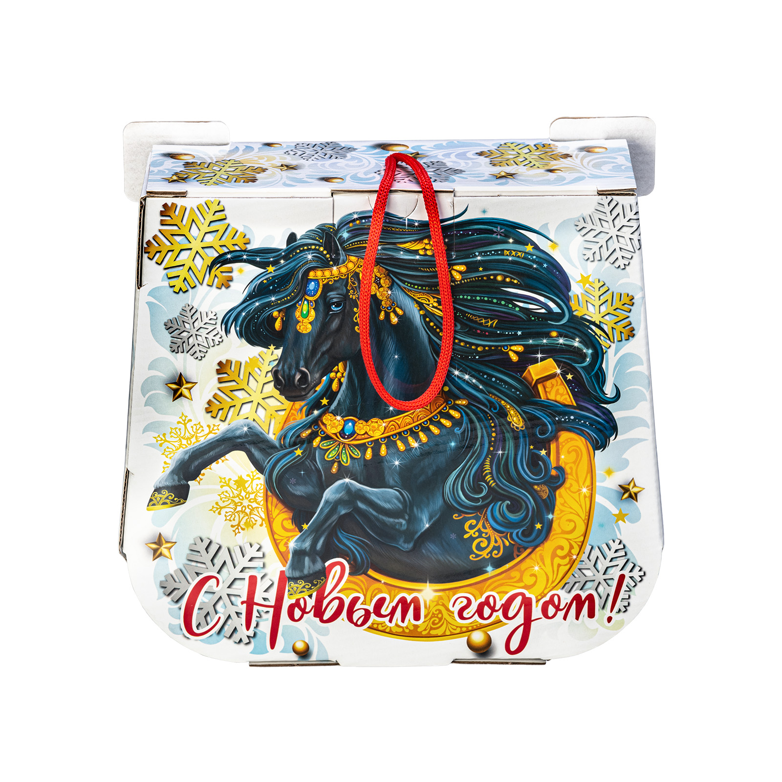 Как при помощи новогоднего подарка создать праздничное настроение на все 12 месяцев? Все просто - нужно подарить сладкий набор с изображением символа наступающего года. Немногие знают, но подкова с древних времен считается символом удачи - не просто так ведь именно ее в древности вешали при входе в дом. Данный подарочный набор повесить не получится, но вот зарядиться теплыми эмоциями от вкусных сладостей можно без труда! За счет оригинального оформления и вкусного сладкого наполнения, такой презент можно смело вручить сластене абсолютно любого возраста! Неповторимый вкус отборных сладостей и яркий дизайн упаковки никого не оставят равнодушным!