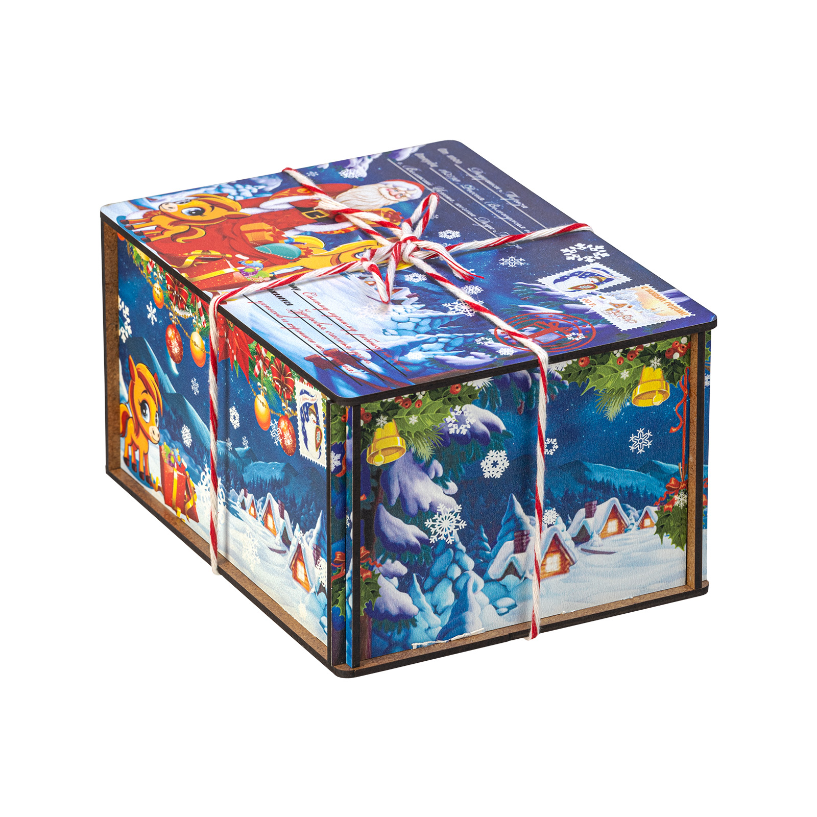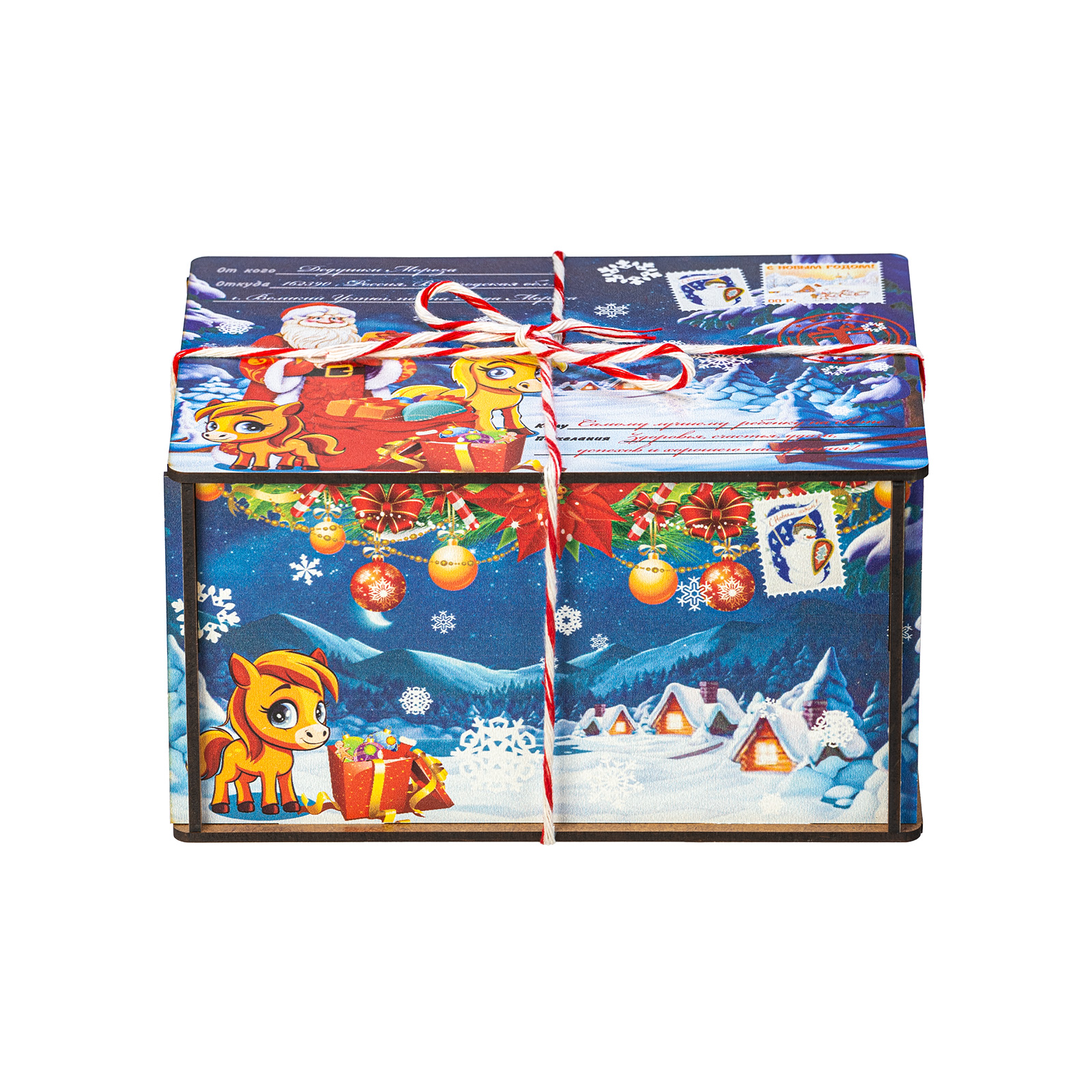 Интересный вариант новогоднего подарка – «Посылка от сказочной лошадки (Полезный состав)». Он представлен в разделе Дерево. Отлично подойдет на подарок в 2026 году с символом Лошадь. Внутри такого презента находится кондитерский набор весом 500 граммов.