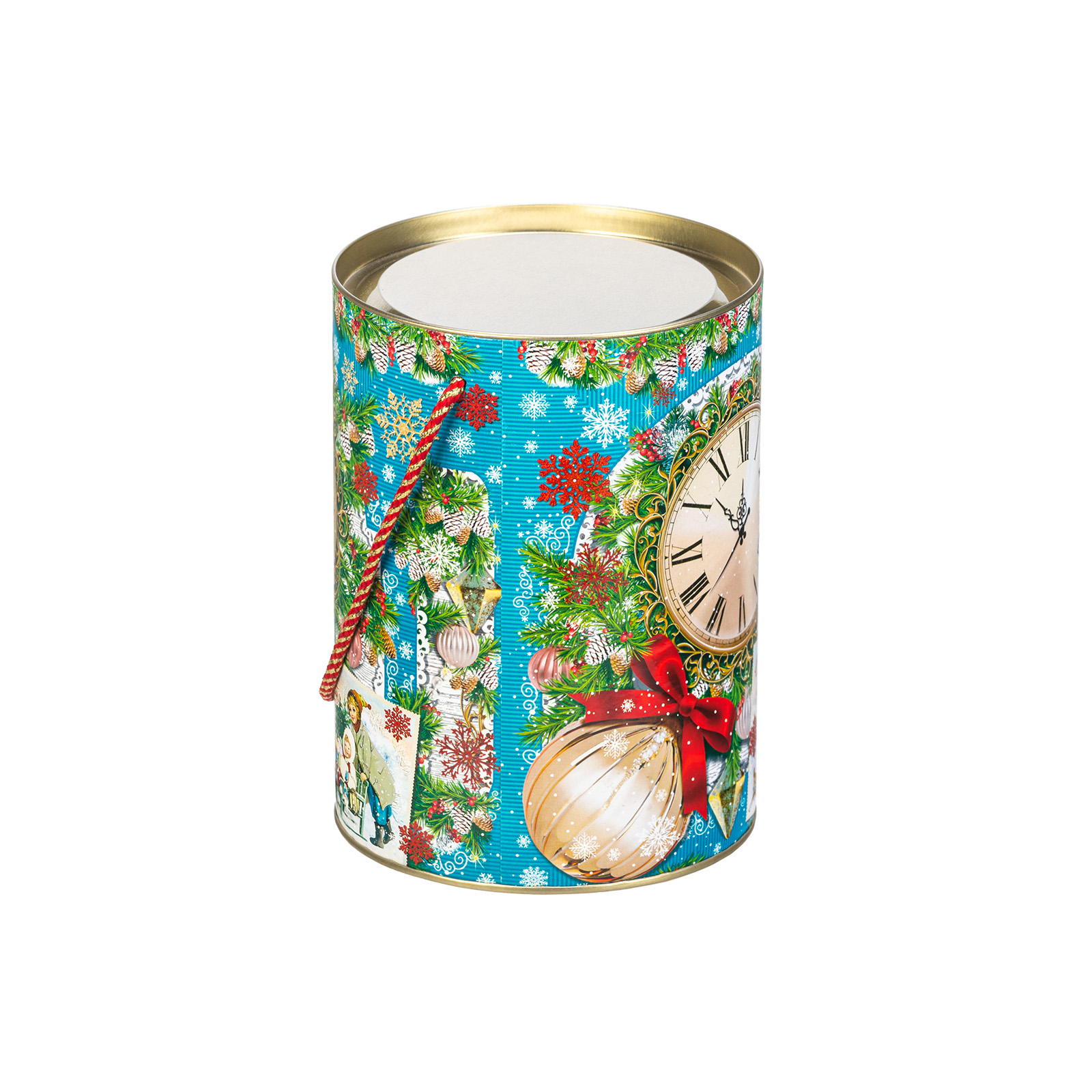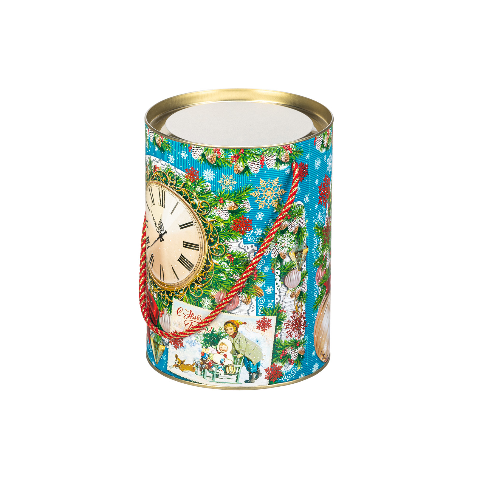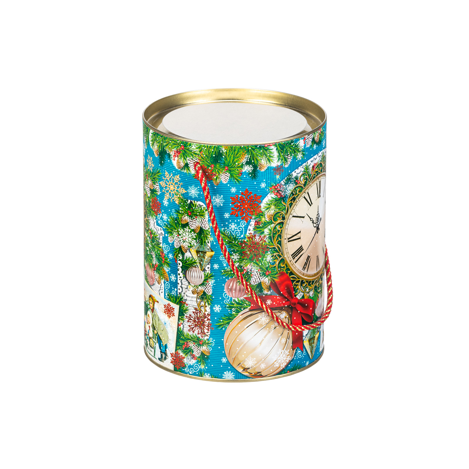 Базовый новогодний сладкий подарок, который придется по душе сластене абсолютно любого возраста. Подарочная упаковка, сделанная из плотного картона, выполнена в виде тубы, украшенной яркими новогодними рисунками: открытками, елочными шариками, снежинками. Упаковка имеет плотную металлическую крышку, а также удобную ручку-веревку ярко-красного цвета. Внутри этой тубы бережно хранятся самые разнообразные вкусные сладости, которые станут идеальным дополнением на любом семейном чаепитии в эти новогодние праздники!